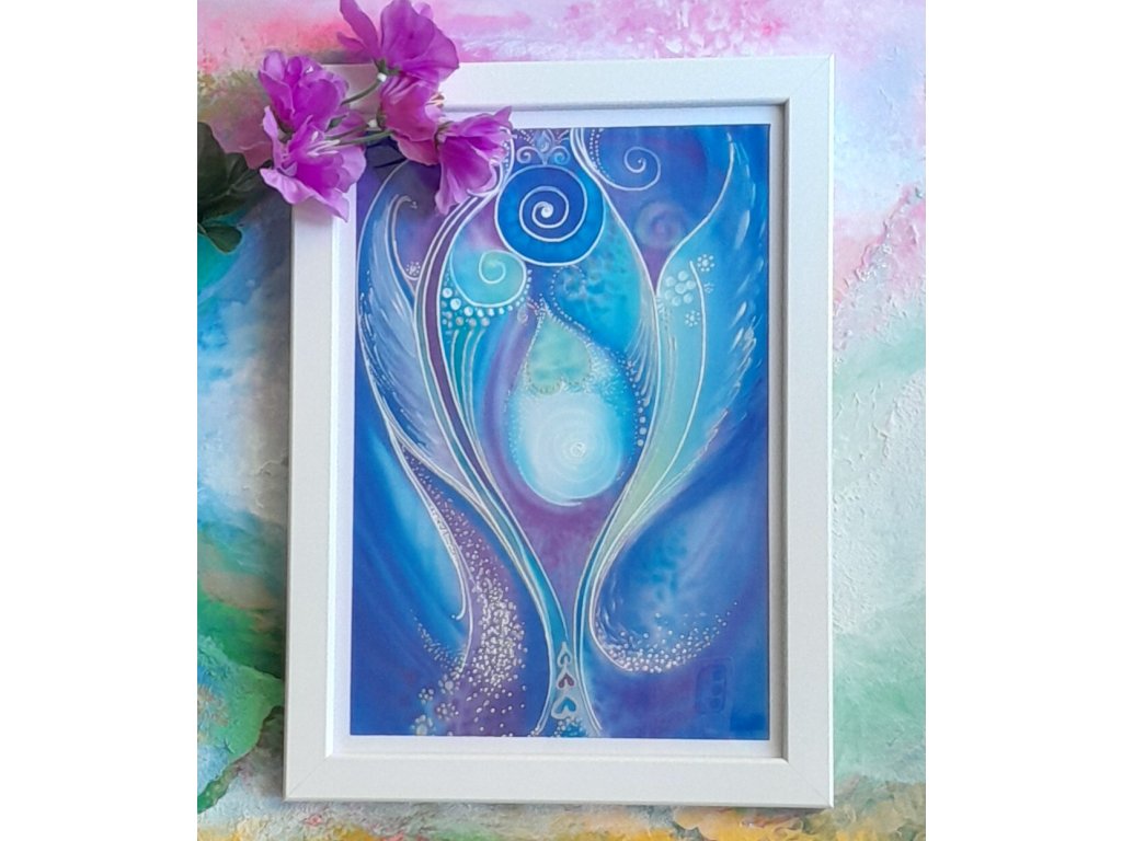 Jemné, andělské působení tohoto obrázku a modrých tónů barev nás zve vstoupit do klidu a naladit se na bytí za čas a prostor.